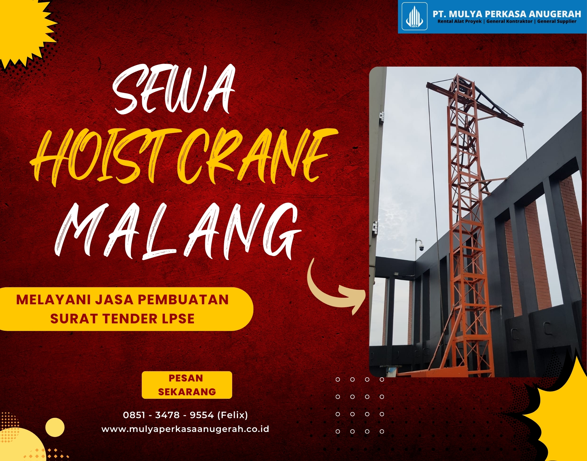 Banyak pelaku industri konstruksi di Malang kini lebih memilih menggunakan jasa sewa dibandingkan membeli unit baru. Selain lebih ekonomis, penyedia jasa sewa hoist crane di Malang biasanya juga menawarkan layanan tambahan seperti operator berpengalaman, perawatan alat rutin, serta pengawasan teknis yang memudahkan kelancaran proyek.