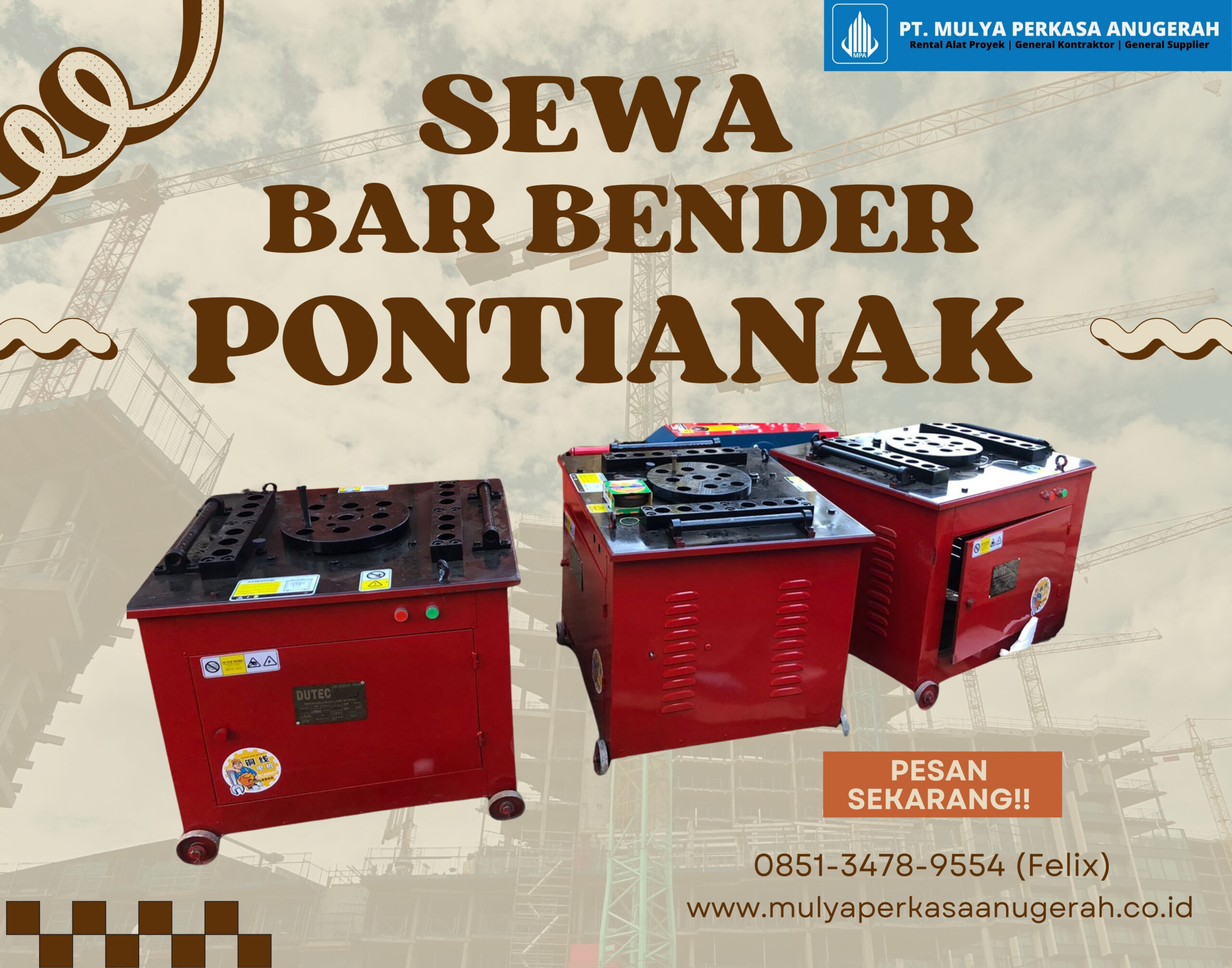 Sedang mencari sewa bar bender Pontianak dengan harga terjangkau dan kualitas terbaik? Kami menyediakan penyewaan mesin bar bender untuk kebutuhan proyek konstruksi di Pontianak dan sekitarnya. Dengan dukungan peralatan modern dan performa tinggi, mesin bar bender kami siap membantu Anda mempercepat proses pembengkokan besi beton (rebar) secara presisi dan efisien. Lihat Artikel Sebelumnya Kenapa Sewa Bar Bender di Pontianak dari PT Mulya Perkasa Anugerah? 1. Spesialis Sewa Alat Konstruksi di Pontianak PT Mulya Perkasa Anugerah telah berpengalaman dalam bidang penyewaan alat berat dan alat konstruksi selama bertahun-tahun. Dengan reputasi yang sudah teruji, kami menyediakan layanan sewa Bar Bender Pontianak untuk berbagai kebutuhan konstruksi seperti pembangunan gudang, pabrik, gedung bertingkat, jalan, dan infrastruktur lainnya. 2. Unit Mesin Bar Bender Berkualitas dan Terawat Kami memastikan setiap unit Bar Bender yang kami sewakan berada dalam kondisi prima dan siap kerja. Perawatan berkala dan pengecekan teknis kami lakukan sebelum alat dikirim ke lokasi proyek Anda. Dengan begitu, produktivitas di lapangan tetap terjaga tanpa hambatan karena kerusakan alat. 3. Harga Sewa Bar Bender yang Kompetitif Kami memahami bahwa efisiensi biaya adalah hal penting dalam proyek konstruksi. Oleh karena itu, kami menawarkan harga sewa Bar Bender di Pontianak yang kompetitif, fleksibel, dan sesuai dengan durasi proyek Anda. Tersedia paket sewa harian, mingguan, hingga bulanan dengan sistem pembayaran yang mudah. Kelebihan Layanan Sewa Bar Bender Pontianak dari PT Mulya Perkasa Anugerah ✔️ Pengiriman Cepat ke Lokasi Proyek Kami menyediakan layanan antar-jemput unit Bar Bender langsung ke lokasi proyek Anda di Pontianak dan sekitarnya. Tim logistik kami siap mengantar alat tepat waktu, sehingga pekerjaan Anda tidak tertunda. ✔️ Dukungan Teknis Selama Masa Sewa Tak hanya menyewakan alat, kami juga memberikan dukungan teknis selama masa sewa. Jika ada kendala atau pertanyaan terkait penggunaan Bar Bender, tim teknisi kami siap membantu baik secara online maupun kunjungan langsung ke lokasi. ✔️ Cocok untuk Berbagai Skala Proyek Apakah proyek Anda berskala kecil atau besar? Kami punya solusi yang sesuai. Layanan sewa Bar Bender Pontianak dari PT Mulya Perkasa Anugerah sangat cocok untuk berbagai jenis proyek, mulai dari renovasi rumah, pembangunan gudang logistik, proyek pabrik industri, pembangunan jalan tol, serta proyek lainnya. Spesifikasi Bar Bender dari PT Mulya Perkasa Anugerah Kami menyediakan beberapa tipe dan ukuran mesin Bar Bender yang dapat Anda pilih sesuai dengan kebutuhan lapangan, antara lain: – Kapasitas besi yang bisa ditekuk dari D8mm – D32mm– Tipe Electric dan Otomatis– Daya Listrik 1 Phase / 3 Phase– Desain kokoh dan mudah dioperasikan– Daya Potong Kuat Cara Sewa Bar Bender di PT Mulya Perkasa Anugerah Proses Sewa Bar Bender di PT. Mulya Perkasa Anugerah sangat mudah dan efisien:1. Cara yang Pertama, hubungi tim kami (0851-3478-9554 Felix) melalui telepon atau WhatsApp untuk konsultasi kebutuhan.2. Cara kedua, tentukan jenis bending (1/3phase), kebutuhan besi yang ingin dibengkokan dan durasi sewa sesuai kebutuhan. Komunikasikan spesifikasi proyek dengan jelas agar penyedia dapat merekomendasikan bar bender yang tepat dan efisien.3. Cara yang Ketiga, kami akan mengirimkan penawaran harga yang kompetitif.4. Cara yang Keempat, setelah deal, kami akan mengirimkan bar bender ke lokasi Anda. Pontianak: Kota Strategis dengan Perkembangan Pembangunan Pesat dan Permintaan Sewa Bar Bender yang Meningkat Pontianak, ibu kota Provinsi Kalimantan Barat, kini tengah mengalami perkembangan pembangunan yang pesat dalam berbagai sektor, mulai dari infrastruktur, kawasan industri, hingga properti komersial dan perumahan. Sebagai kota yang dilintasi oleh garis khatulistiwa dan memiliki posisi geografis strategis di jalur perdagangan, Pontianak terus menarik perhatian para investor dan pelaku usaha konstruksi. Pembangunan jembatan, jalan raya, gedung perkantoran, serta proyek perumahan skala besar menjadikan kebutuhan akan alat berat dan peralatan konstruksi semakin tinggi. Salah satu peralatan yang kini banyak dicari adalah bar bender, yakni mesin pelengkung besi beton yang sangat penting dalam proses pembangunan struktur beton bertulang. Seiring meningkatnya volume proyek konstruksi di kota ini, permintaan jasa sewa bar bender di Pontianak pun turut melonjak secara signifikan. Minat terhadap sewa bar bender Pontianak tumbuh seiring meningkatnya kesadaran akan efisiensi kerja dan kebutuhan untuk mempercepat proses pengerjaan proyek. Dibandingkan membeli mesin sendiri, menyewa bar bender menjadi solusi hemat biaya bagi kontraktor dan pengembang lokal, terutama untuk proyek jangka pendek atau menengah. Hal ini mendorong tumbuhnya banyak perusahaan penyedia jasa konstruksi, termasuk layanan sewa alat berat dan mesin bar bender terpercaya. Tak heran jika Pontianak kini menjadi salah satu kota dengan pertumbuhan sektor konstruksi tercepat di Indonesia bagian barat. Bagi para kontraktor, pengembang properti, maupun pelaku industri yang sedang menjalankan proyek di Pontianak, memilih layanan sewa bar bender yang profesional dan berkualitas adalah langkah strategis untuk memastikan hasil kerja yang maksimal. Dengan memilih penyedia jasa yang berpengalaman, proyek Anda akan berjalan lebih efisien, aman, dan sesuai target. KAMI MELAYANI PENGIRIMAN SELURUH INDONESIA DAN JASA PEMBUATAN SURAT TENDER LPSE!! PRODUK KAMI – PT MULYA PERKASA ANUGERAH Lihat Artikel Lainnya TEMUKAN KAMI DI BERBAGAI MARKETPLACE Hubungi Kami Sekarang!! Tak perlu repot angkut barang! Gunakan Bar Bender Pontianak untuk solusi cepat, aman, dan efisien. Hubungi (0851-3478-9554 Felix) untuk konsultasi & penawaran terbaik. 📞 Hubungi Kami✉ Email Kami